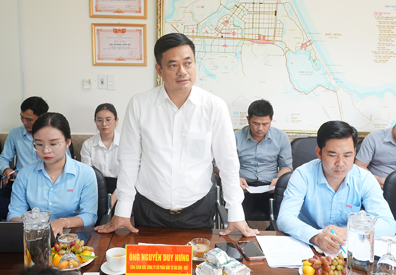 Ông Nguyễn Duy Hưng, Tổng GĐ công ty cổ phần đầu tư Sài Gòn - Huế báo cáo tình hình tại buổi làm việc