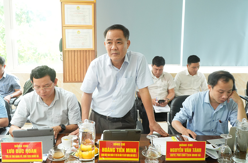 Phát biểu tại buổi làm việc, TUV, Bí thư Đảng uỷ Lưu Đức Hoàn đã thống nhất những nội dung làm việc giữa các bên. Trên cơ sở đó, Bí thư Đảng uỷ yêu cầu UBND xã cùng với UBMTTQVN xã tiếp tục tăng cường công tác tuyên truyền, vận động các hộ dân chấp hành chủ trương thu hồi đất, sớm bàn giao mặt bằng phục vụ dự án. Đặc biệt là khu vực giải phóng mặt bằng thuộc giai đoạn 5 của dự án. Đối với các trường hợp cố tình không chấp hành, địa phương sẽ xây dựng kế hoạch tổ chức cưỡng chế thu hồi đất theo đúng quy định của pháp luật, đảm bảo tiến độ và hiệu quả thực hiện dự án.