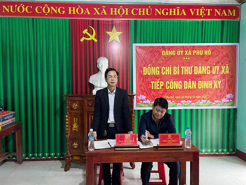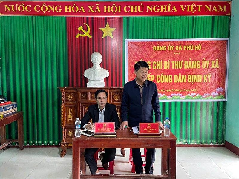 Sáng 03/12, tại Nhà sinh hoạt cộng đồng khu vực Trung An, thôn Tây Hồ, xã Phú Hồ, đồng chí Trần Kim Nhân - Bí thư Đảng ủy, Chủ tịch HĐND xã đã có buổi tiếp công dân định kỳ. Tham dự buổi tiếp công dân còn có đồng chí Đào Hữu Bích - Ủy viên Ban Thường vụ Đảng ủy, Phó Chủ tịch UBND xã cùng đại diện Ban Chỉ huy Công an xã và các phòng, ban chuyên môn của xã.