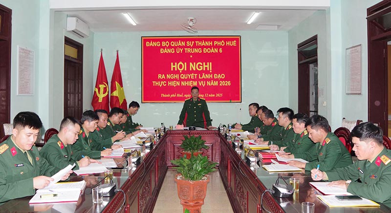 Đảng ủy Trung đoàn 6 – Bộ CHQS thành phố Huế: Xác định 7 mục tiêu, nhiệm vụ trọng tâm trong năm 2026