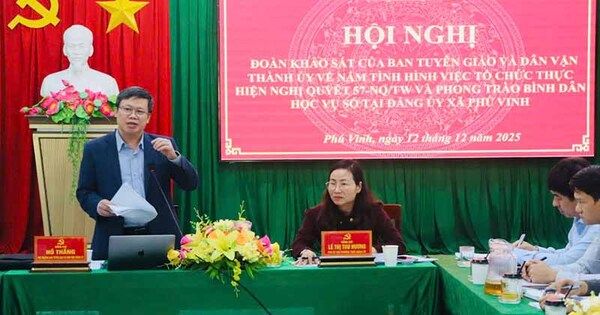 Vừa qua, Đoàn khảo sát của Ban Tuyên giáo và Dân vận Thành ủy Huế đã có buổi làm việc với Đảng ủy xã Phú Vinh về tình hình triển khai thực hiện Nghị quyết số 57-NQ/TW, ngày 22/12/2024 của Bộ Chính trị về đột phá phát triển khoa học, công nghệ, đổi mới sáng tạo và chuyển đổi số quốc gia. Đoàn do đồng chí Hồ Thắng làm Trưởng đoàn; tham gia đoàn có đại diện các cơ quan chuyên môn và Tổ công tác triển khai phong trào “Bình dân học vụ số”.