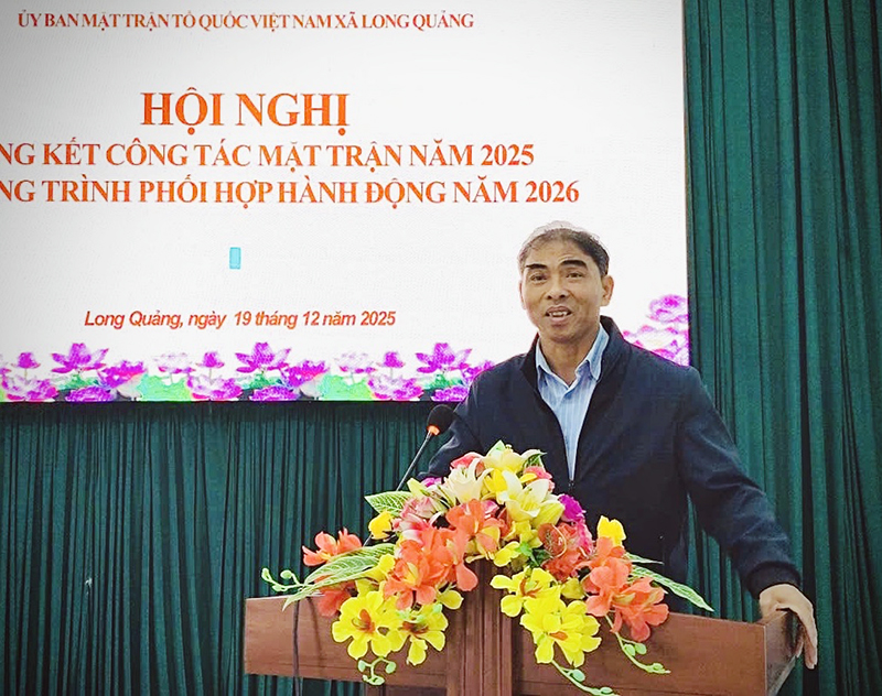 Phát biểu chỉ đạo tại hội nghị, Bí thư Đảng uỷ, Chủ tịch HĐND xã Hồ Sỹ Minh đề nghị: Năm 2026, Uỷ ban MTTQVN xã Long Quảng phát huy mạnh mẽ vai trò nòng cốt của Mặt trận trong xây dựng khối đại đoàn kết toàn dân tộc; đổi mới nội dung, phương thức hoạt động theo hướng sát dân, gần dân, vì quyền và lợi ích hợp pháp, chính đáng của Nhân dân; nâng cao hơn nữa chất lượng công tác giám sát, phản biện xã hội; tham gia xây dựng Đảng, xây dựng chính quyền trong sạch, vững mạnh; tập trung giám sát những vấn đề Nhân dân quan tâm; Tiếp tục phối hợp chặt chẽ với chính quyền và các cơ quan liên quan trong công tác chuẩn bị và tổ chức thành công cuộc bầu cử đại biểu Quốc hội và HĐND các cấp nhiệm kỳ 2026-2031; quan tâm xây dựng, bồi dưỡng đội ngũ cán bộ Mặt trận và cán bộ các tổ chức chính trị - xã hội có bản lĩnh chính trị vững vàng, tâm huyết, trách nhiệm, có kỹ năng vận động quần chúng và năng lực chuyển đổi số, đáp ứng yêu cầu, nhiệm vụ trong giai đoạn mới.