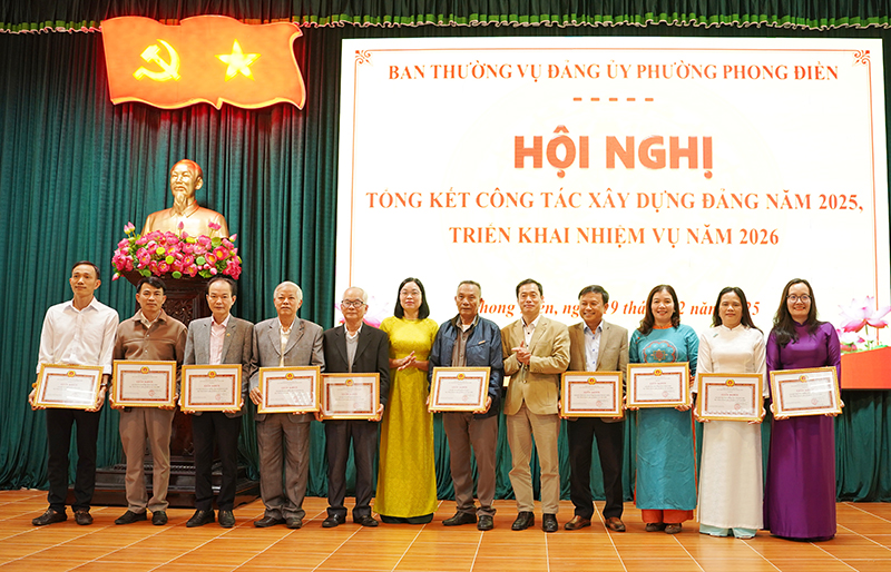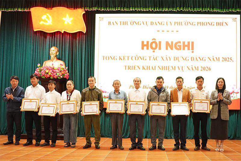 Tại hội nghị, Ban Thường vụ Đảng ủy phường Phong Điền đã tặng giấy khen cho 10 tổ chức cơ sở Đảng và 30 đảng viên hoàn thành xuất sắc nhiệm vụ năm 2025.