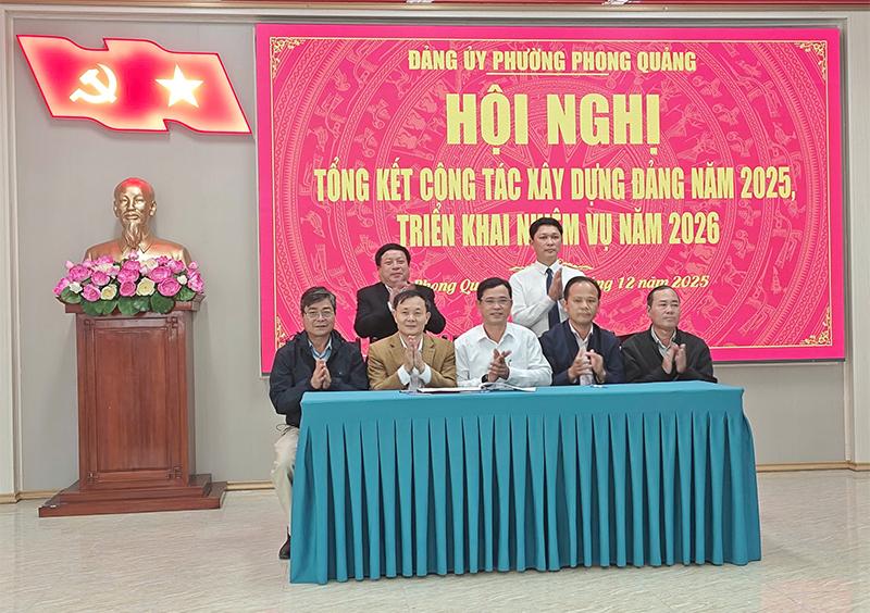 Dịp này, Đảng ủy phường Phong Quảng đã trao giấy khen cho 9 tập thể và 20 cá nhân có nhiều thành tích xuất sắc trong công tác năm 2025, đồng thời tổ chức ký cam kết thi đua thực hiện nhiệm vụ năm 2026.