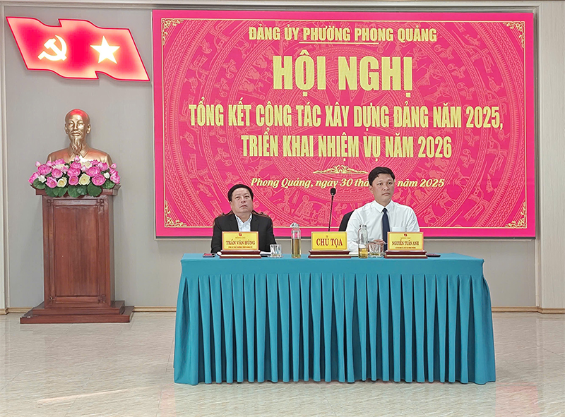 Phát biểu chỉ đạo tại hội nghị, đồng chí Nguyễn Tuấn Anh – Bí thư Đảng ủy, Chủ tịch HĐND phường đánh giá cao những kết quả đạt được trong công tác xây dựng Đảng của Đảng bộ phường Phong Quảng năm 2025, đặc biệt là tinh thần đoàn kết, chủ động, trách nhiệm trong bối cảnh thực hiện sáp nhập và vận hành chính quyền địa phương hai cấp. Đồng thời, đề nghị Đảng ủy phường trong thời gian tới tiếp tục nâng cao chất lượng sinh hoạt chi bộ, đẩy mạnh công tác phát triển đảng viên, siết chặt kỷ luật, kỷ cương trong Đảng; làm tốt công tác cán bộ, kiểm tra, giám sát gắn với phòng, chống tham nhũng, tiêu cực; gắn công tác xây dựng Đảng với lãnh đạo thực hiện hiệu quả nhiệm vụ phát triển kinh tế – xã hội, bảo đảm quốc phòng – an ninh và chuẩn bị tốt các điều kiện phục vụ bầu cử đại biểu Quốc hội và HĐND các cấp nhiệm kỳ 2026–2031.
