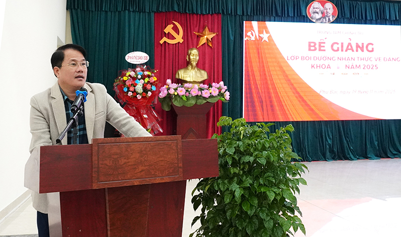 Phát biểu bế giảng lớp học, đồng chí Phan Hùng Tiến, Giám đốc Trung tâm Chính trị phường Phú Bài biểu dương và ghi nhận những cố gắng trong học tập của các học viên, đồng thời nhấn mạnh: Lớp bồi dưỡng nhận thức về Đảng góp phần bồi dưỡng những kiến thức chính trị bước đầu giúp mỗi học viên có nhận thức đúng về Đảng, về con đường, phương hướng phấn đấu để trở thành người Đảng viên Đảng Cộng sản Việt Nam. Đồng chí mong rằng các học viên sau khi tham gia lớp học phải tiếp tục phát huy hơn nữa tinh thần tự học tập, tự nghiên cứu, không ngừng nâng cao trình độ về lý luận chính trị, chuyên môn nghiệp vụ, đồng thời thường xuyên học tập và làm theo tư tưởng, đạo đức, phong cách Hồ Chí Minh, sớm trở thành Đảng viên Đảng Cộng sản Việt Nam.