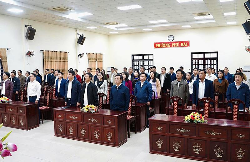 Sáng 1/12, Đảng ủy, HĐND, UBND, UBMTTQ Việt Nam phường Phú Bài tổ chức Lễ chào cờ đầu tuần tháng 12/2025. Tham dự có đồng chí Lê Văn Cường - Thành ủy viên, Bí thư Đảng ủy, Chủ tịch HĐND phường; đồng chí Nguyễn Văn Phú - Phó Bí thư Thường trực Đảng ủy; đồng chí Lê Bá Minh Hải - Phó Bí thư Đảng ủy, Chủ tịch UBND phường; các đồng chí uỷ viên Ban Thường vụ Đảng ủy cùng toàn thể cán bộ, công chức, viên chức, người lao động các cơ quan, ban, ngành, đoàn thể trong toàn phường.
