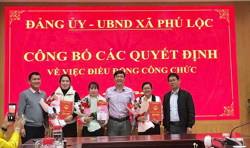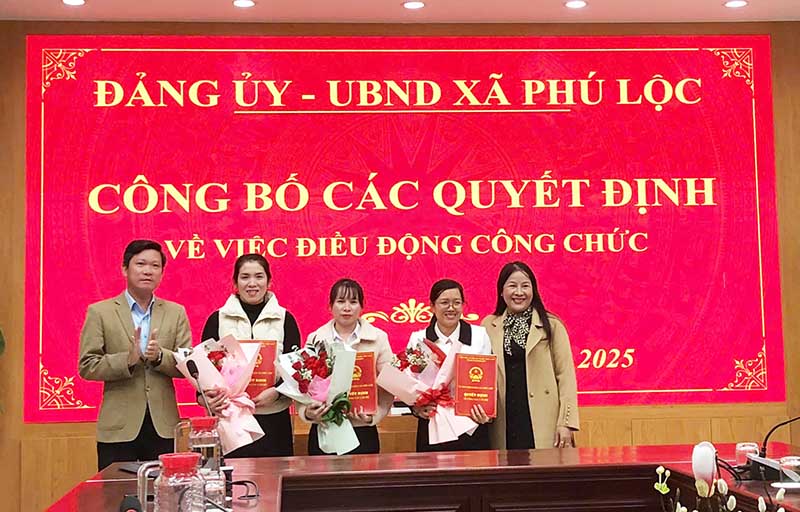 Theo các Quyết định được công bố, các đồng chí Phạm Thị Ngâu, Chuyên viên Văn phòng Đảng ủy xã Phú Lộc; Lê Thị Lộc, Chuyên viên Văn phòng HĐND và UBND xã Phú Lộc; Nguyễn Thị Nhi, Chuyên viên Phòng Kinh tế xã Phú Lộc được điều động đến nhận công tác tại UBND xã Vinh Lộc kể từ tháng 11/2025.