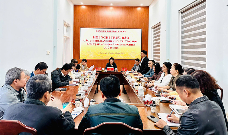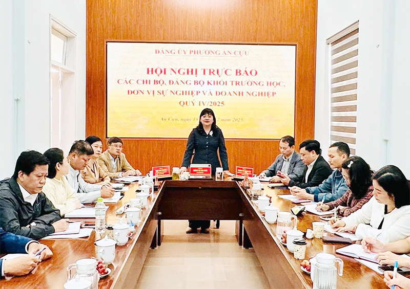 Vừa qua, Đảng ủy phường An Cựu tổ chức hội nghị trực báo các chi bộ, đảng bộ khối trường học, đơn vị sự nghiệp và doanh nghiệp quý IV/2025. Tham dự và chỉ đạo Hội nghị có đồng chí Dương Thị Thu Thủy - Bí thư Đảng ủy, Chủ tịch HĐND phường; đồng chí Phan Vĩnh Duy Mãn - Phó Bí thư Thường trực Đảng ủy phường; cùng với sự tham dự của các đồng chí Ủy viên Ban Thường vụ Đảng ủy, lãnh đạo các cơ quan chuyên trách tham mưu giúp việc Đảng ủy, các phòng, đơn vị sự nghiệp thuộc UBND phường cùng các đồng chí bí thư, phó bí thư các các chi bộ, đảng bộ khối trường học, đơn vị sự nghiệp và doanh nghiệp thuộc Đảng bộ phường.
