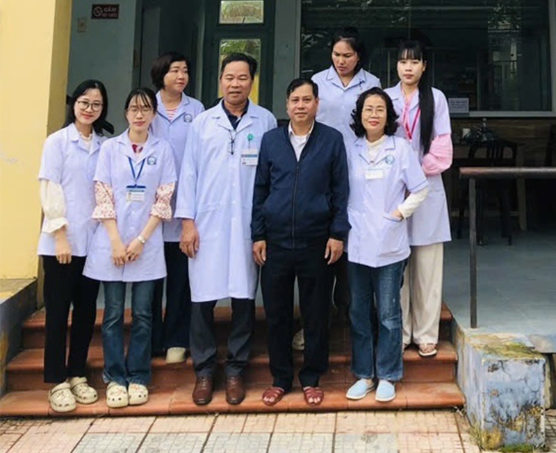 Bí thư Đảng uỷ, Chủ tịch HĐND phường Nguyễn Xuân Dương chụp ảnh kỉ niệm cùng cán bộ Trạm y tế phường