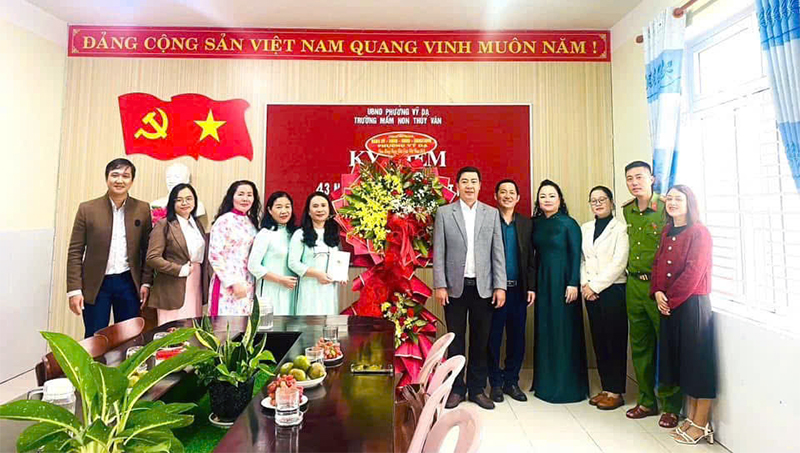 Đồng chí Nguyễn Duy Chính - Phó Bí thư Thường trực Đảng ủy phường - Trưởng đoàn, thăm và chúc mừng Trường Mầm non Thủy Vân.