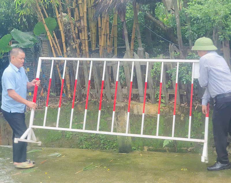 Chuẩn bị trước hệ thống rào chắn để hạn chế người dân đi lại các tuyến đường bị ngập sâu
