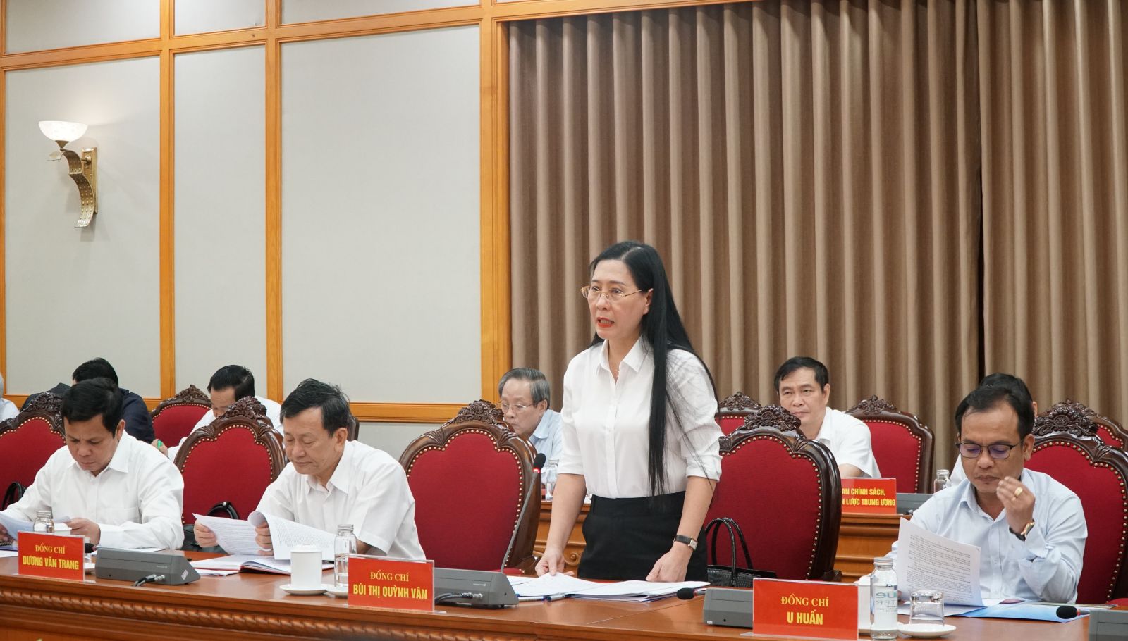 Đồng chí Bùi Thị Quỳnh Vân, Ủy viên Trung ương Đảng, Bí thư Tỉnh ủy Quảng Ngãi báo cáo tại buổi làm việc.