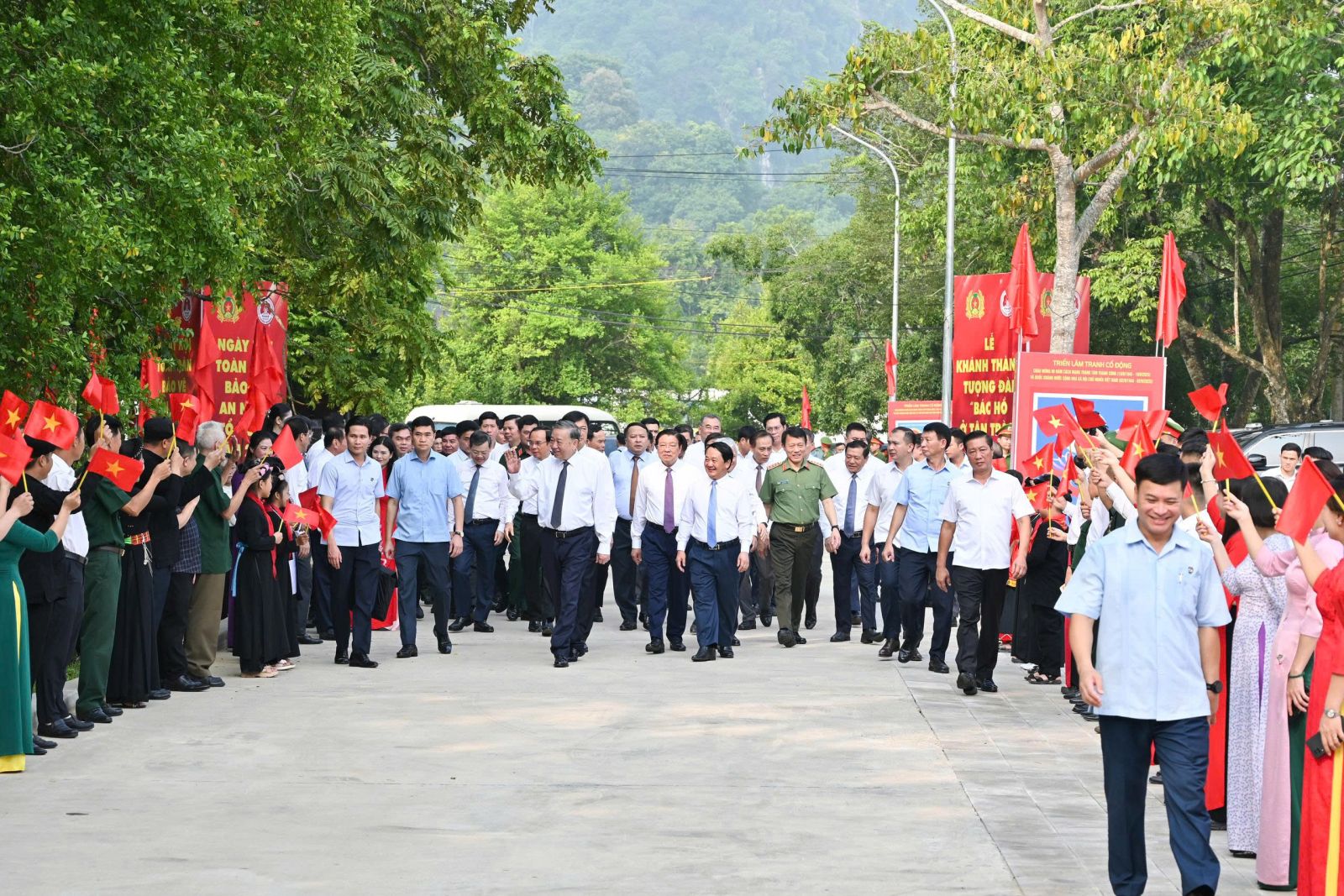 Tổng Bí thư và các đồng chí Lãnh đạo cắt băng khánh thành tượng đài "Bác Hồ ở Tân Trào".