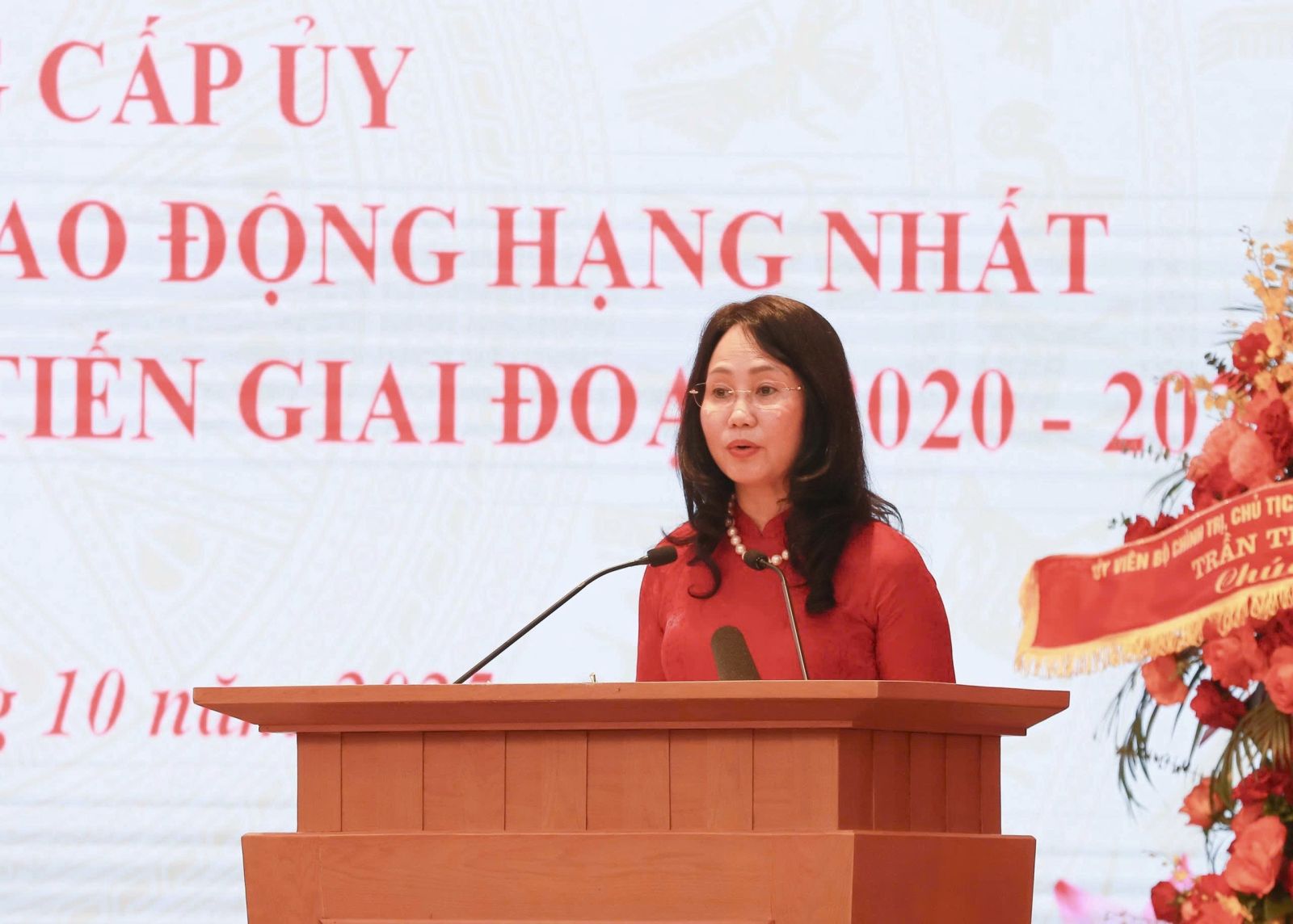 Đồng chí Trần Cẩm Tú, Ủy viên Bộ Chính trị, Thường trực Ban Bí thư trao tặng Bằng khen của Thủ tướng Chính phủ cho các tập thể, cá nhân tại Lễ kỷ niệm.