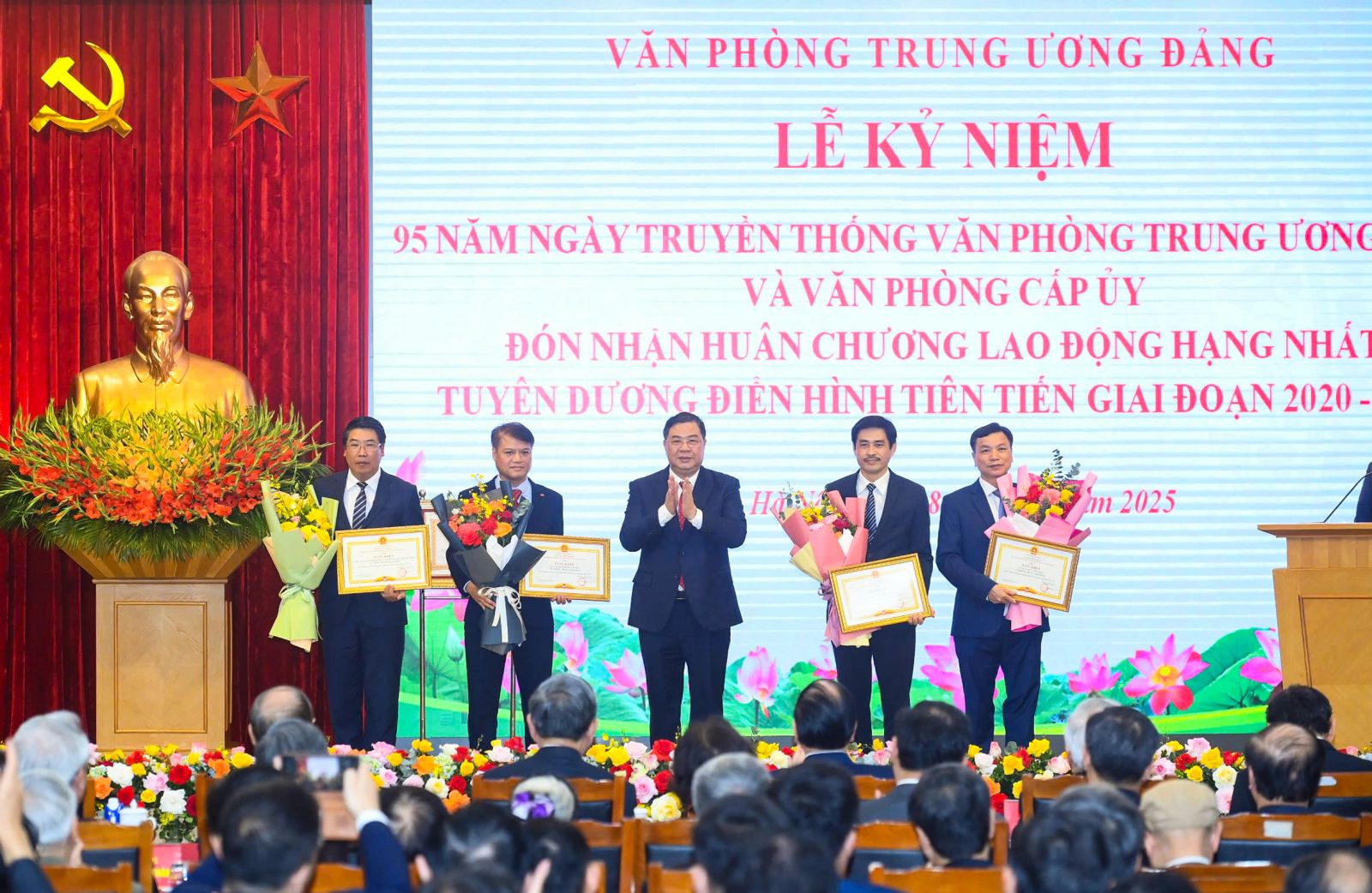 (ĐCSVN) - Chiều 18/10/2025, tại Hà Nội, Văn phòng Trung ương Đảng tổ chức trọng thể Lễ kỷ niệm 95 năm Ngày truyền thống Văn phòng Trung ương Đảng và Văn phòng cấp ủy (18/10/1930 - 18/10/2025); đón nhận Huân chương Lao động hạng Nhất và tuyên dương các điển hình tiên tiến giai đoạn 2020 - 2025. Tổng Bí thư Tô Lâm và các đồng chí lãnh đạo, nguyên lãnh đạo Đảng, Nhà nước tham dự.