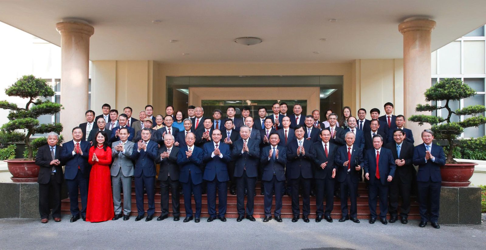 Tổng Bí thư Tô Lâm chụp ảnh lưu niệm cùng các đại biểu tại trụ sở Văn phòng Trung ương Đảng.