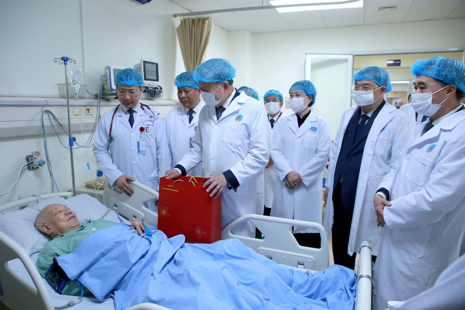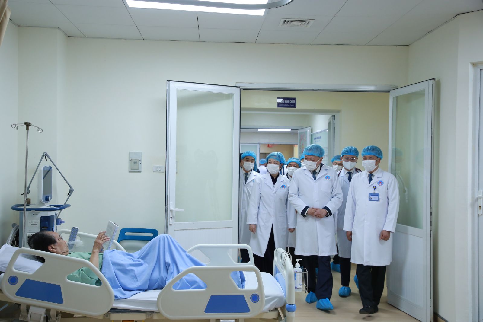 Tổng Bí thư Tô Lâm và các đồng chí lãnh đạo thăm các bệnh nhân đang điều trị tại Bệnh viện.