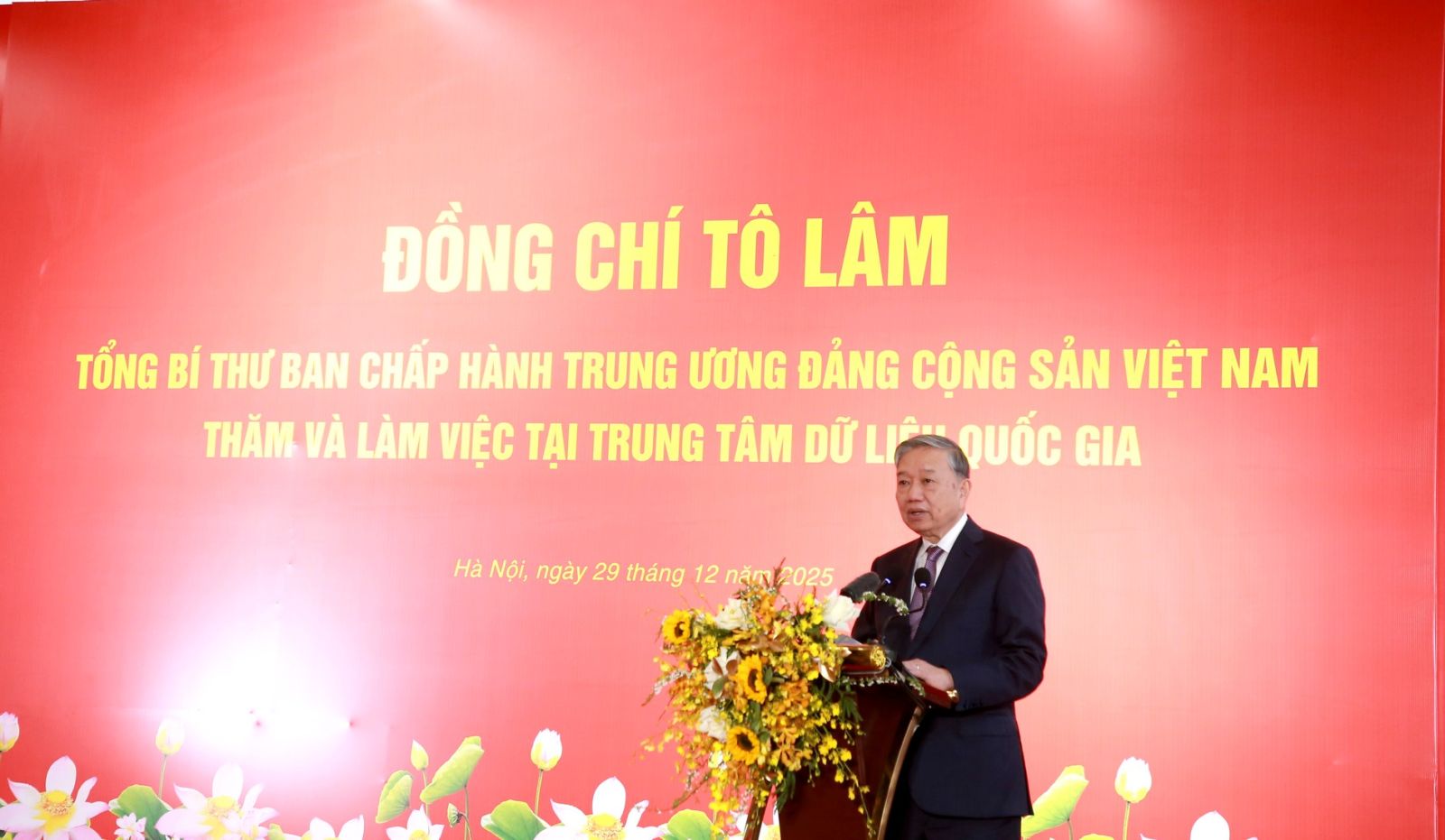 Tổng Bí thư Tô Lâm phát biểu tại buổi làm việc với Trung tâm Dữ liệu Quốc gia.