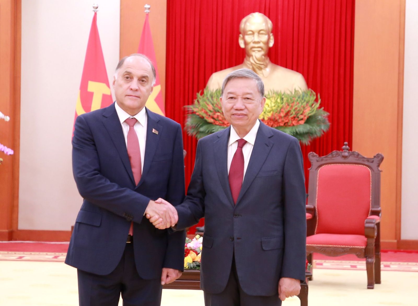Tổng Bí thư Tô Lâm và Thư ký Hội đồng An ninh quốc gia Belarus Volfovich Aleksandr Grigorievich.