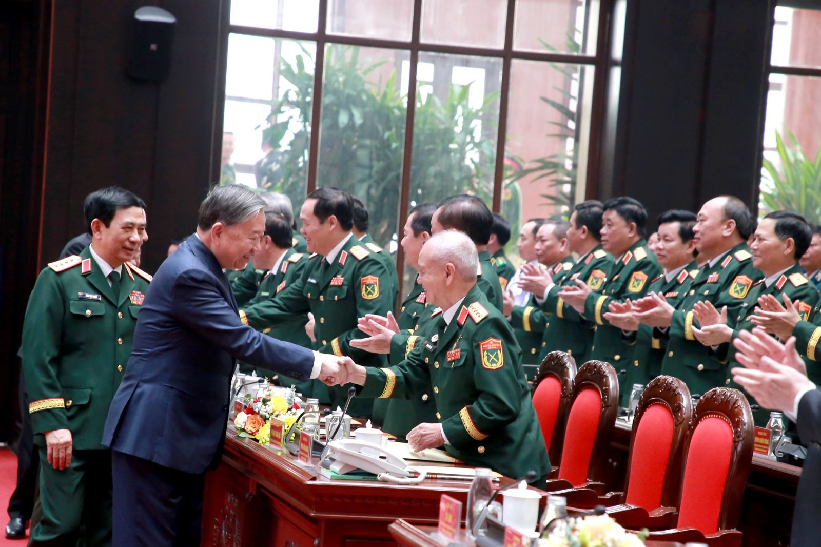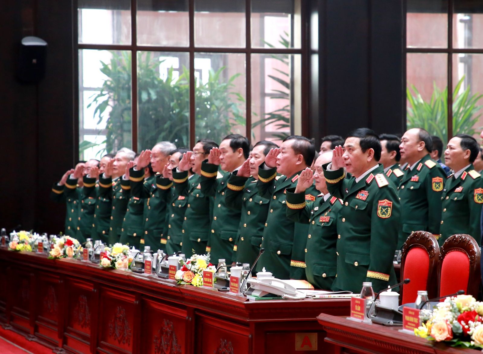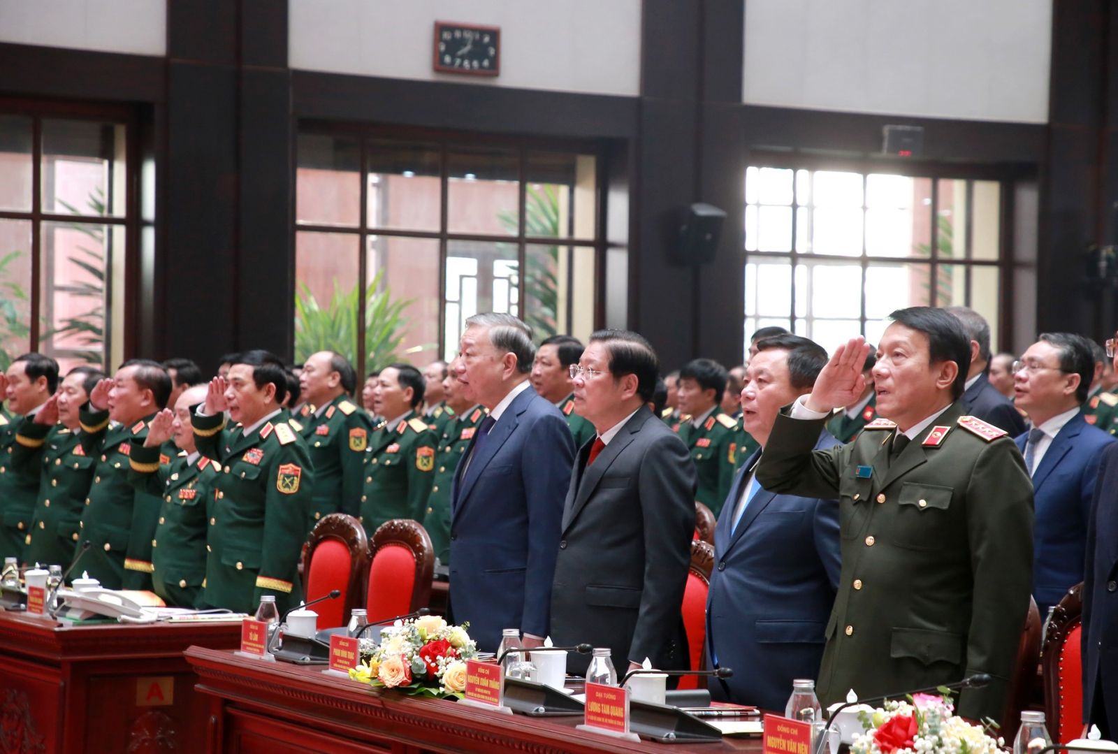 Tổng Bí thư Tô Lâm và các đại biểu thực hiện nghi thức chào cờ.