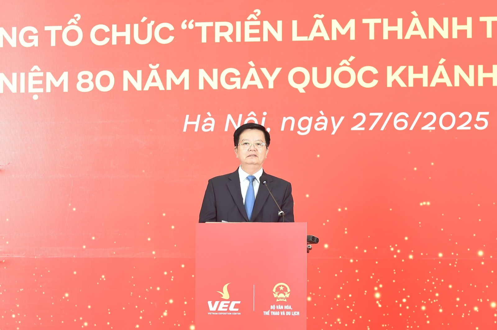 "Triển lãm thành tựu kinh tế - xã hội, với chủ đề 80 năm hành trình độc lập - tự do - hạnh phúc là một hoạt động mang ý nghĩa chính trị, lịch sử và nhân văn sâu sắc. Đây là dịp để chúng ta nhìn lại một cách toàn diện chặng đường 80 năm phát triển của đất nước trên các lĩnh vực: kinh tế, văn hóa, xã hội, khoa học công nghệ, quốc phòng - an ninh, đối ngoại, và hội nhập quốc tế, là nơi thể hiện tinh thần đoàn kết, sáng tạo, khát vọng phát triển của cả dân tộc Việt Nam dưới sự lãnh đạo của Đảng", Phó Thủ tướng phát biểu.