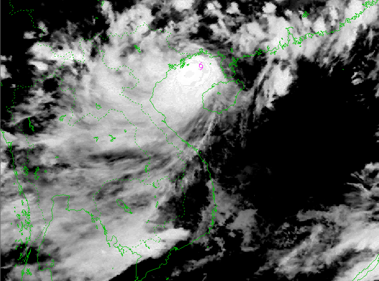 Vị trí tâm bão ở khoảng 20.9 độ Vĩ Bắc; 108.5 độ Kinh Đông. Sức gió mạnh nhất: Cấp 9-10 (75-102 km/h), giật cấp 13.