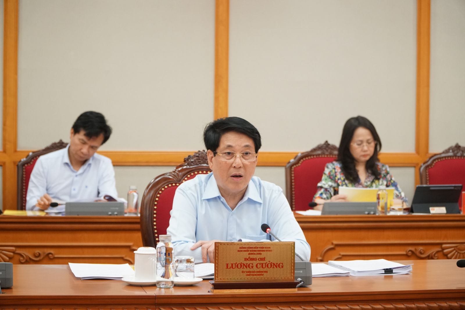(ĐCSVN) - Chiều 8/9, tại Trụ sở Trung ương Đảng, Tổ công tác của Bộ Chính trị do đồng chí Lương Cường, Ủy viên Bộ Chính trị, Chủ tịch nước chủ trì đã làm việc với Ban Thường vụ Tỉnh ủy Phú Thọ và Ban Thường vụ Tỉnh ủy Đồng Nai để cho ý kiến vào dự thảo văn kiện và Đề án nhân sự cấp ủy trình Đại hội đại biểu của 2 Đảng bộ nhiệm kỳ 2025-2030.