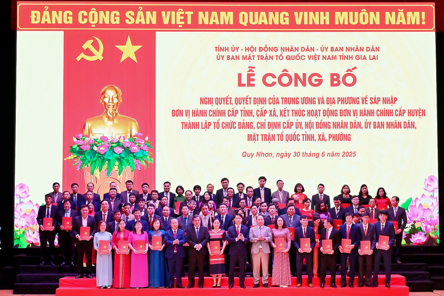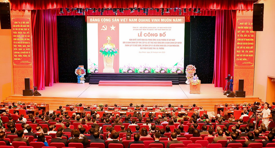 Sáng 30-6, tại Trung tâm Hội nghị tỉnh (TP. Quy Nhơn), Tỉnh ủy, HĐND, UBND, Ủy ban MTTQ Việt Nam tỉnh Gia Lai long trọng tổ chức Lễ công bố Nghị quyết, Quyết định của Trung ương và địa phương về sáp nhập đơn vị hành chính cấp tỉnh, cấp xã.