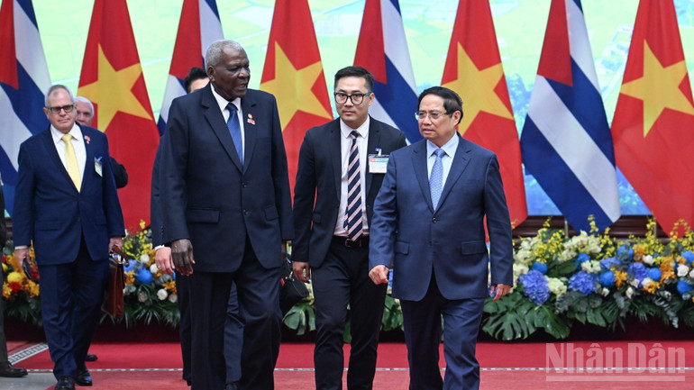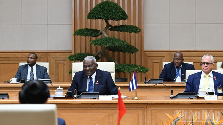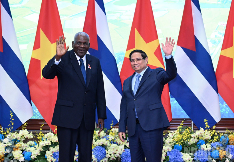Trên tinh thần đó, Thủ tướng Phạm Minh Chính khẳng định Chính phủ Việt Nam sẽ tiếp tục triển khai các biện pháp nhằm hỗ trợ Cuba một cách thiết thực, cụ thể, đặc biệt là các dự án nông nghiệp theo mô hình của doanh nghiệp nhằm hỗ trợ an ninh lương thực tại Cuba, cũng như các lĩnh vực quan trọng khác về năng lượng, công nghệ sinh học. Thủ tướng Chính phủ đề nghị hai bên phối hợp chặt chẽ triển khai các thỏa thuận giữa Lãnh đạo cấp cao hai nước thời gian qua và các thỏa thuận ký kết trong dịp chuyến thăm lần này, nâng cao hiệu quả các cơ chế hợp tác giữa hai nước trên các kênh Đảng, Nhà nước, Chính phủ, Quốc hội và giữa các bộ, ngành địa phương; đồng thời tiếp tục phối hợp và ủng hộ lẫn nhau tại các diễn đàn đa phương.