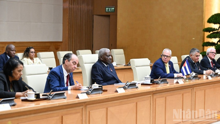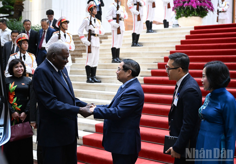 Chủ tịch Quốc hội Esteban Lazo Hernandez bày tỏ vui mừng dẫn đầu đoàn Đại biểu cấp cao Đảng, Nhà nước Cuba trở lại thăm Việt Nam và gặp lại Thủ tướng Chính phủ Phạm Minh Chính; chia sẻ cảm nhận sau mỗi chuyến thăm Việt Nam và bày tỏ vui mừng trước những thành tựu phát triển kinh tế, xã hội và đối ngoại của Việt Nam thời gian qua; khẳng định những kết quả, thắng lợi của nhân dân Việt Nam luôn là nguồn cổ vũ, động viên to lớn cho sự nghiệp cách mạng của nhân dân Cuba.