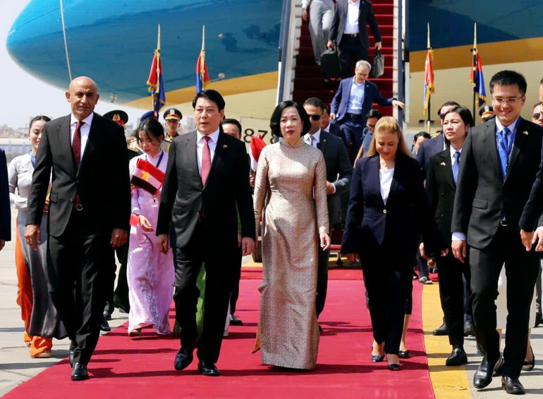 Chủ tịch nước Lương Cường đến Cairo, bắt đầu chuyến thăm cấp Nhà nước Cộng hòa Arab Ai Cập