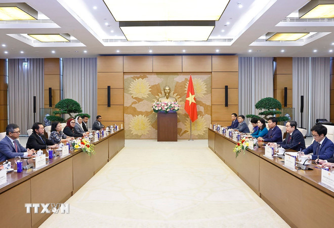 Phó Chủ tịch Hội đồng Đại biểu Địa phương Yorrys Raweyai cảm ơn Chủ tịch Quốc hội đã dành thời gian tiếp Đoàn; đánh giá cao các kết quả quan trọng trong chuyến thăm cấp Nhà nước của Tổng Bí thư Tô Lâm sang Indonesia, nhất là việc hai nước nâng cấp quan hệ lên Đối tác Chiến lược toàn diện; cho rằng sự kiện này rất có ý nghĩa trong bối cảnh hai nước chuẩn bị kỷ niệm 70 năm thiết lập quan hệ ngoại giao.