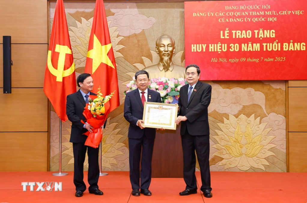 Trao huy hiệu 30 năm tuổi Đảng tặng đồng chí Vũ Hải Hà, Chủ tịch Quốc hội Trần Thanh Mẫn nêu rõ thời gian qua, Quốc hội không ngừng đổi mới, nâng cao chất lượng, hiệu quả hoạt động cả về lập pháp, giám sát tối cao.