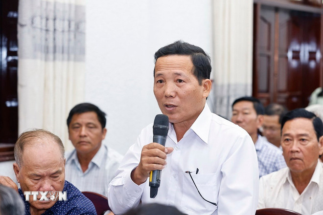 Bày tỏ sự đồng thuận và thống nhất cao với các chủ trương của Đảng, đặc biệt là các nghị quyết mới được Bộ Chính trị ban hành liên quan đến phát triển khoa học, công nghệ, hội nhập quốc tế, công tác xây dựng và thi hành pháp luật, phát triển kinh tế tư nhân... cử tri Nguyễn Vĩnh Thọ (xã Tân Hòa) kiến nghị Quốc hội tiếp tục ban hành các chính sách nhằm thúc đẩy phát triển bền vững, nâng cao đời sống nhân dân, đặc biệt là khu vực vùng sâu, vùng xa, để "không ai bị bỏ lại phía sau" trong tiến trình phát triển.