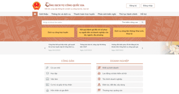 Cổng Dịch vụ công quốc gia (ảnh chụp màn hình).