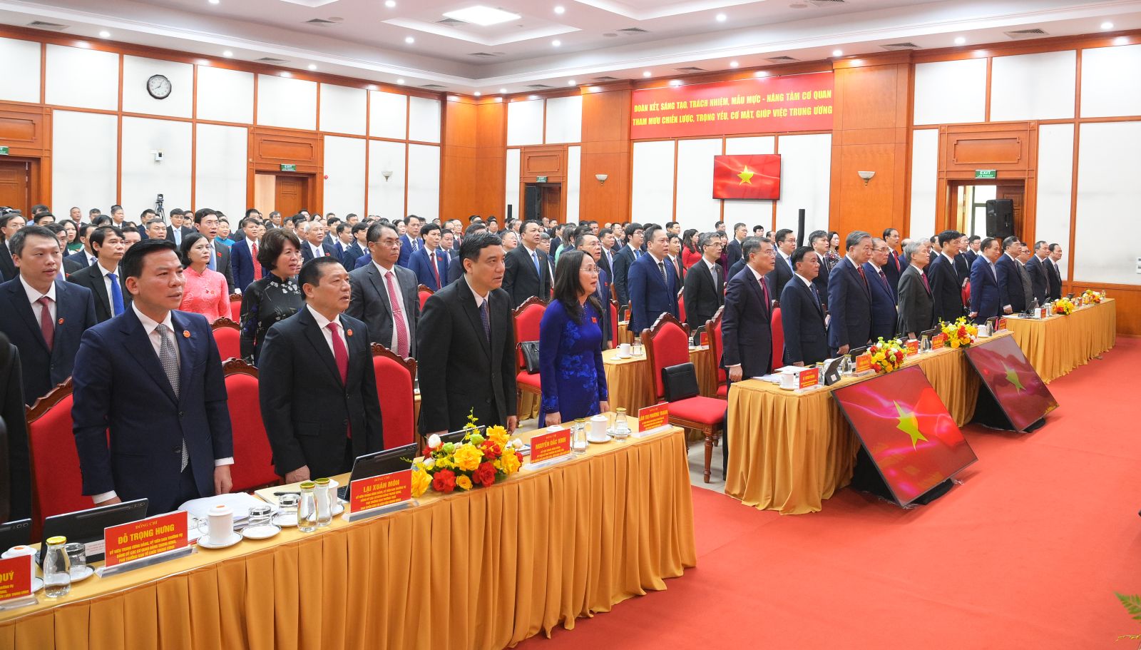 Đại hội vinh dự đón Tổng Bí thư Tô Lâm cùng các đồng chí lãnh đạo, nguyên lãnh đạo Đảng, Nhà nước tới dự. (Ảnh: Thủy Nguyên)