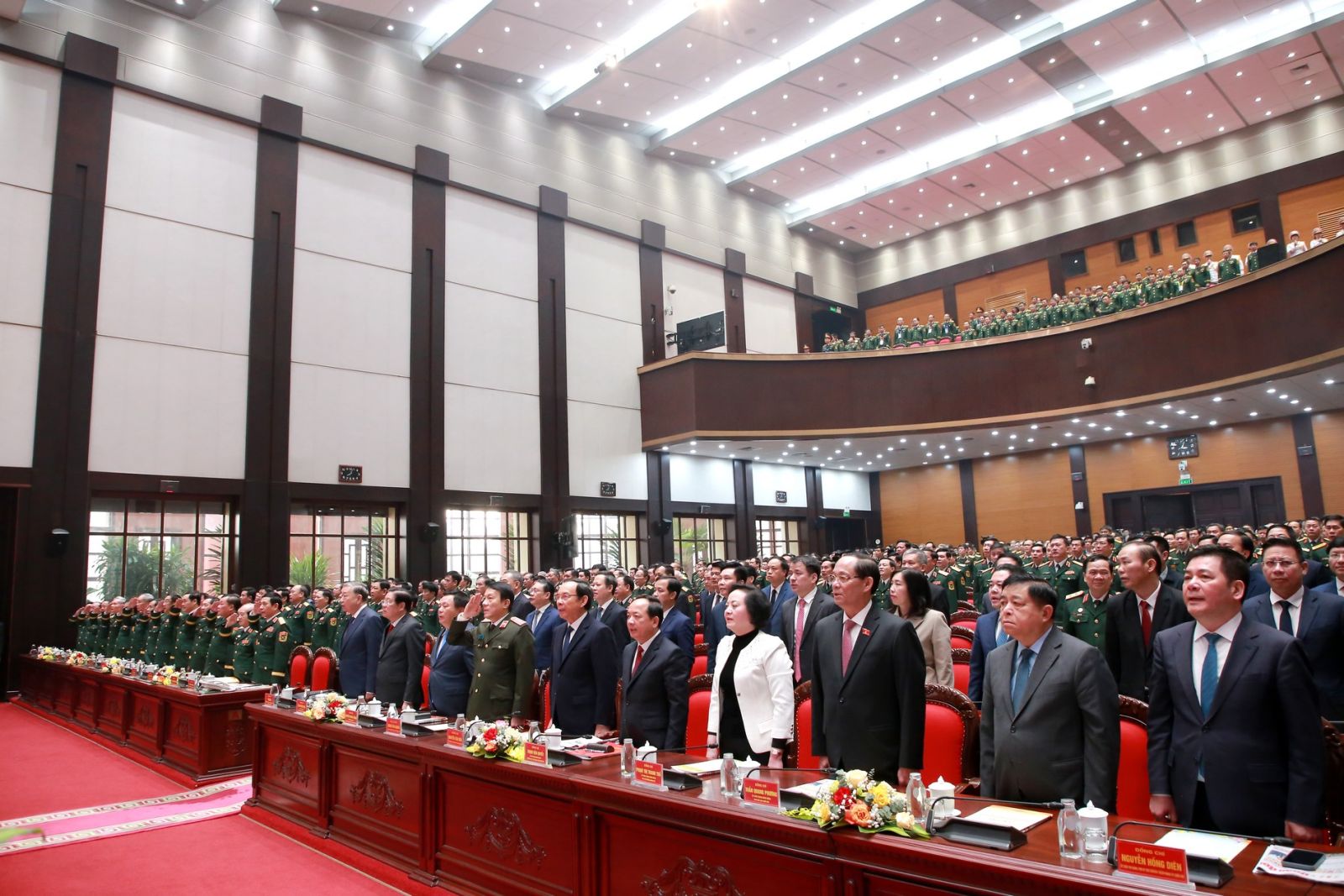 Tổng Bí thư Tô Lâm và các đại biểu thực hiện nghi thức chào cờ.