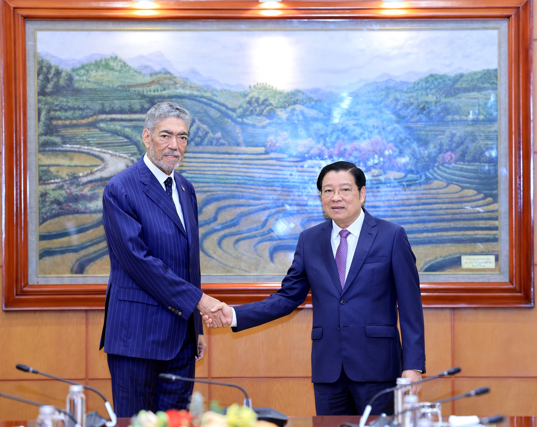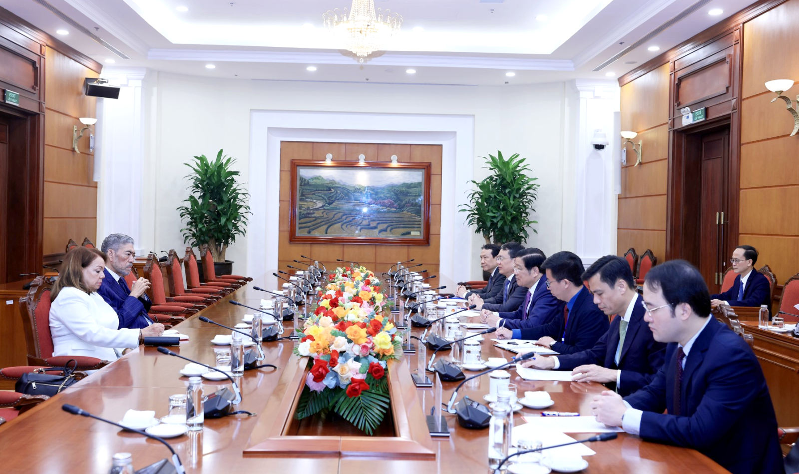 Thời gian tới, để thúc đẩy hơn nữa quan hệ giữa hai Đảng, hai nước ngày càng đi vào chiều sâu, toàn diện, hiệu quả trên các lĩnh vực, đồng chí Phan Đình Trạc trân trọng đề nghị với đồng chí Tổng Bí thư Đảng MIU một số phương hướng, biện pháp cụ thể: (1) Duy trì thường xuyên liên lạc, trao đổi và phối hợp triển khai hiệu quả Thỏa thuận hợp tác giữa hai Đảng giai đoạn 2023-2028, trong đó quan tâm thúc đẩy các chuyến thăm và tiếp xúc của Lãnh đạo cấp cao hai bên. (2) Tăng cường thúc đẩy việc triển khai các nội dung hợp tác song phương nhân chuyến thăm chính thức Cộng hòa Dominica của Thủ tướng Chính phủ Phạm Minh Chính; thúc đẩy đàm phán, ký kết các thỏa thuận và hiệp định hợp tác song phương, nhất là trong các lĩnh vực như kinh tế, thương mại, khuyến khích và bảo hộ đầu tư, du lịch, nông nghiệp, tạo khuôn khổ pháp lý thuận lợi cho việc phát triển hợp tác lâu dài phù hợp với tầm mức quan hệ hai nước hiện nay. (3) Thúc đẩy toàn diện quan hệ hợp tác với các nước, nhất là các nước đối tác quan trọng và các nước, chính đảng bạn bè truyền thống; mong rằng, đồng chí Tổng Bí thư và Đảng MIU tiếp tục là cầu nối để các doanh nghiệp của Việt Nam có thể tăng cường trao đổi, tìm hiểu khả năng, cơ hội hợp tác đầu tư. (4) Tiếp tục phối hợp chặt chẽ trong công tác thông tin đối ngoại, tuyên truyền về Chủ tịch Hồ Chí Minh và Việt Nam tại Cộng hòa Dominica và các nước khu vực Mỹ Latinh; hỗ trợ Đảng Cộng sản Việt Nam tăng cường quan hệ với các chính đảng tại Cộng hòa Dominica và Mỹ Latinh, cũng như các diễn đàn đa phương chính đảng như Diễn đàn Sao Paolo, Hội thảo quốc tế “Các chính đảng và một xã hội mới”...