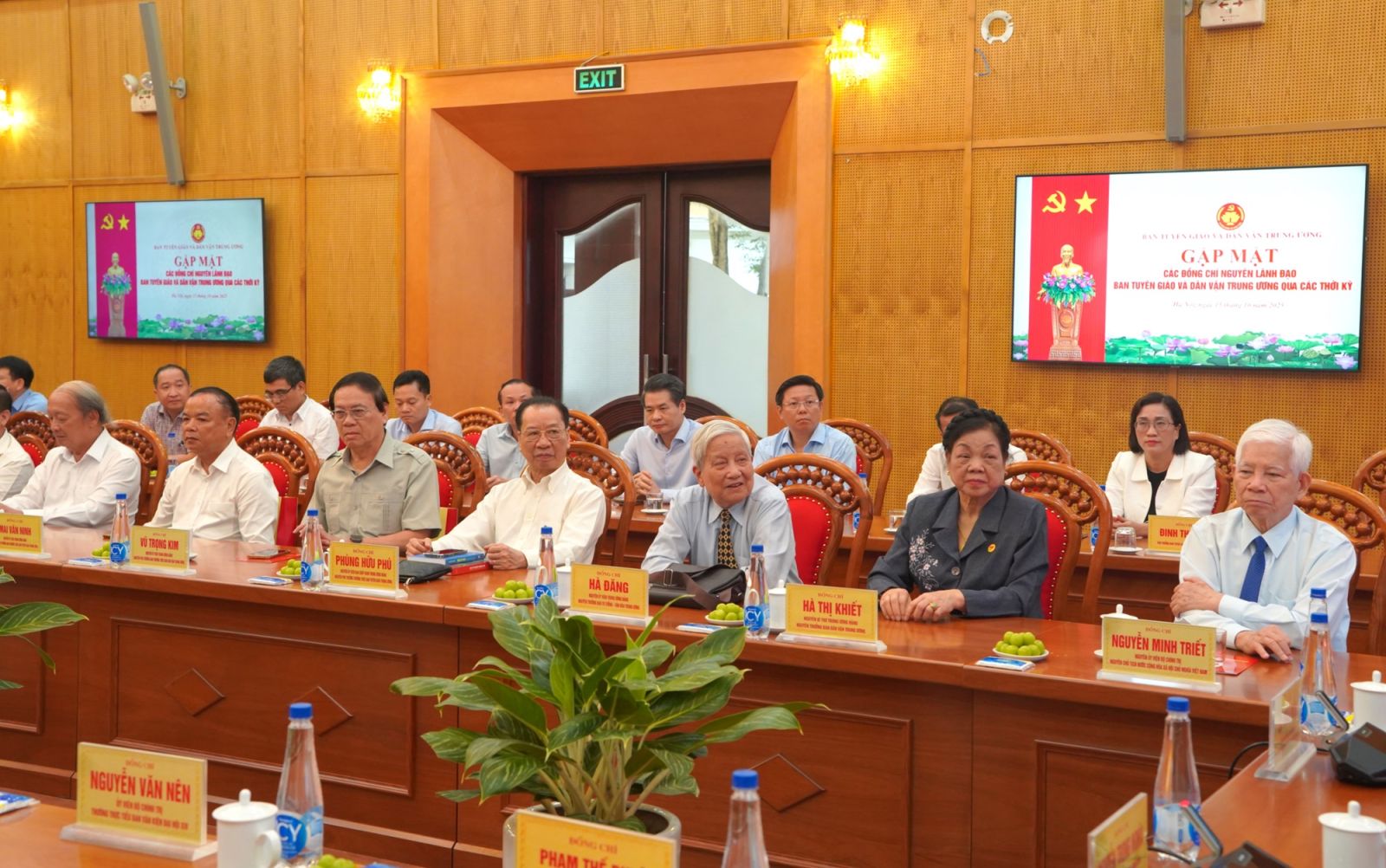 Dự buổi gặp mặt có các đồng chí: Nguyễn Minh Triết, nguyên Ủy viên Bộ Chính trị, nguyên Chủ tịch nước, nguyên Trưởng ban Dân vận Trung ương; Phạm Thế Duyệt, nguyên Ủy viên Thường vụ Thường trực Bộ Chính trị, nguyên Chủ tịch Uỷ ban Trung ương Mặt trận Tổ quốc Việt Nam, nguyên Trưởng ban Dân vận Trung ương; Hà Thị Khiết, nguyên Bí thư Trung ương Đảng, nguyên Trưởng ban Dân vận Trung ương; Hà Đăng, nguyên Ủy viên Trung ương Đảng, nguyên Trưởng ban Tư tưởng-Văn hoá Trung ương; các đồng chí Ủy viên Trung ương Đảng, nguyên Ủy viên Trung ương Đảng, lãnh đạo, nguyên lãnh đạo Ban Tuyên giáo và Dân vận Trung ương qua các thời kỳ; các đồng chí vụ trưởng, trưởng các đơn vị của Ban Tuyên giáo và Dân vận Trung ương.