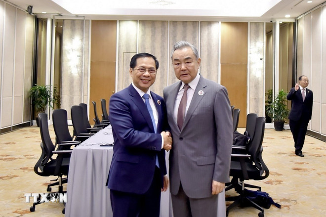 Trước đó, ngày 10/7, Phó Thủ tướng, Bộ trưởng Ngoại giao Bùi Thanh Sơn đã có cuộc tiếp xúc song phương với Bộ trưởng Ngoại giao Trung Quốc Vương Nghị. Tại đây, hai bên đã đi sâu trao đổi ý kiến toàn diện, thực chất về tình hình quan hệ song phương và các vấn đề quốc tế, khu vực cùng quan tâm trong không khí chân thành, hữu nghị.