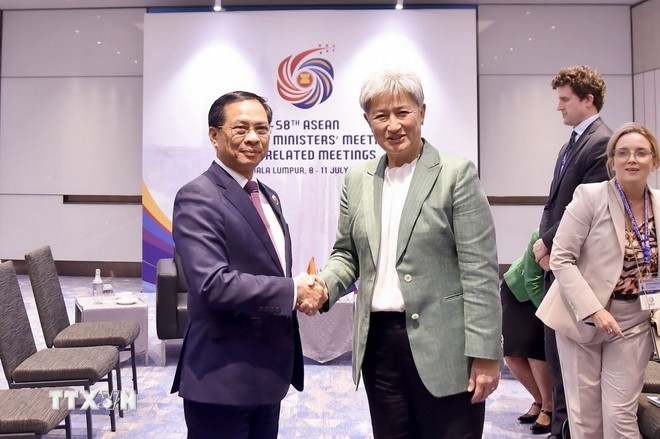 Ngoại trưởng Penny Wong khẳng định Việt Nam là đối tác quan trọng của Australia tại khu vực và hai bên hợp tác chặt chẽ trong các vấn đề chiến lược của khu vực và quốc tế; nhất trí Australia tăng cường chia sẻ kinh nghiệm, kỹ thuật với Việt Nam về chuyển đổi xanh, xây dựng thị trường carbon, số hóa và công nghệ mới nổi.