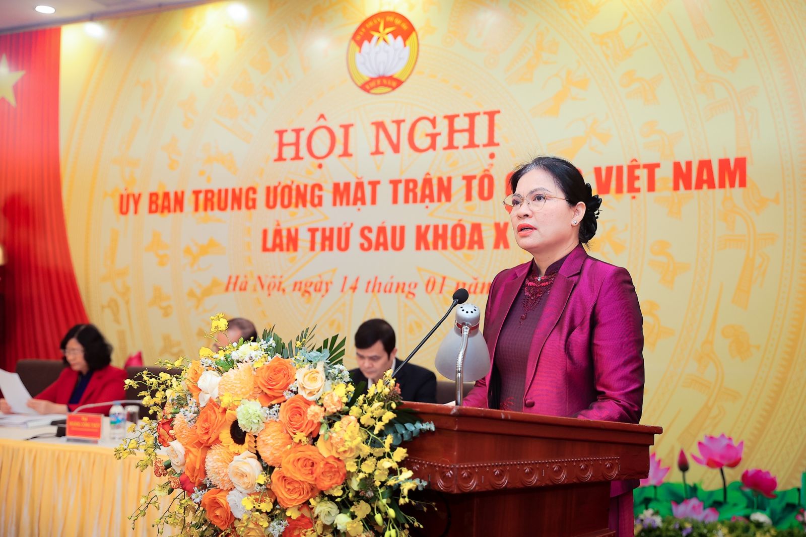 Phát biểu góp ý, Chủ tịch Ủy ban MTTQ Việt Nam thành phố Hà Nội Bùi Huyền Mai, đánh giá cao chất lượng dự thảo Báo cáo, đồng thời đề nghị làm nổi bật hơn các kết quả tiêu biểu của công tác Mặt trận năm 2025; bổ sung nội dung về tham gia góp ý sửa đổi các quy định liên quan đến sắp xếp tổ chức bộ máy; làm rõ hơn kết quả triển khai chuyển đổi số trong hệ thống MTTQ Việt Nam. Chủ tịch Ủy ban MTTQ Việt Nam thành phố Hà Nội cũng kiến nghị nghiên cứu sửa đổi một số nội dung của Quy định 301-QĐ/TW cho phù hợp thực tiễn và sớm ban hành các hướng dẫn liên quan đến tổ chức bộ máy, công tác dư luận xã hội, chỉ số niềm tin và xây dựng khu dân cư đoàn kết, ấm no, hạnh phúc.
