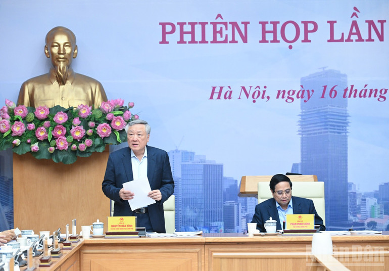 Cùng dự có các đồng chí Ủy viên Bộ Chính trị: Nguyễn Hòa Bình, Phó Thủ tướng Thường trực Chính phủ; Nguyễn Văn Nên, Thường trực Tiểu ban Văn kiện Đại hội XIV của Đảng.