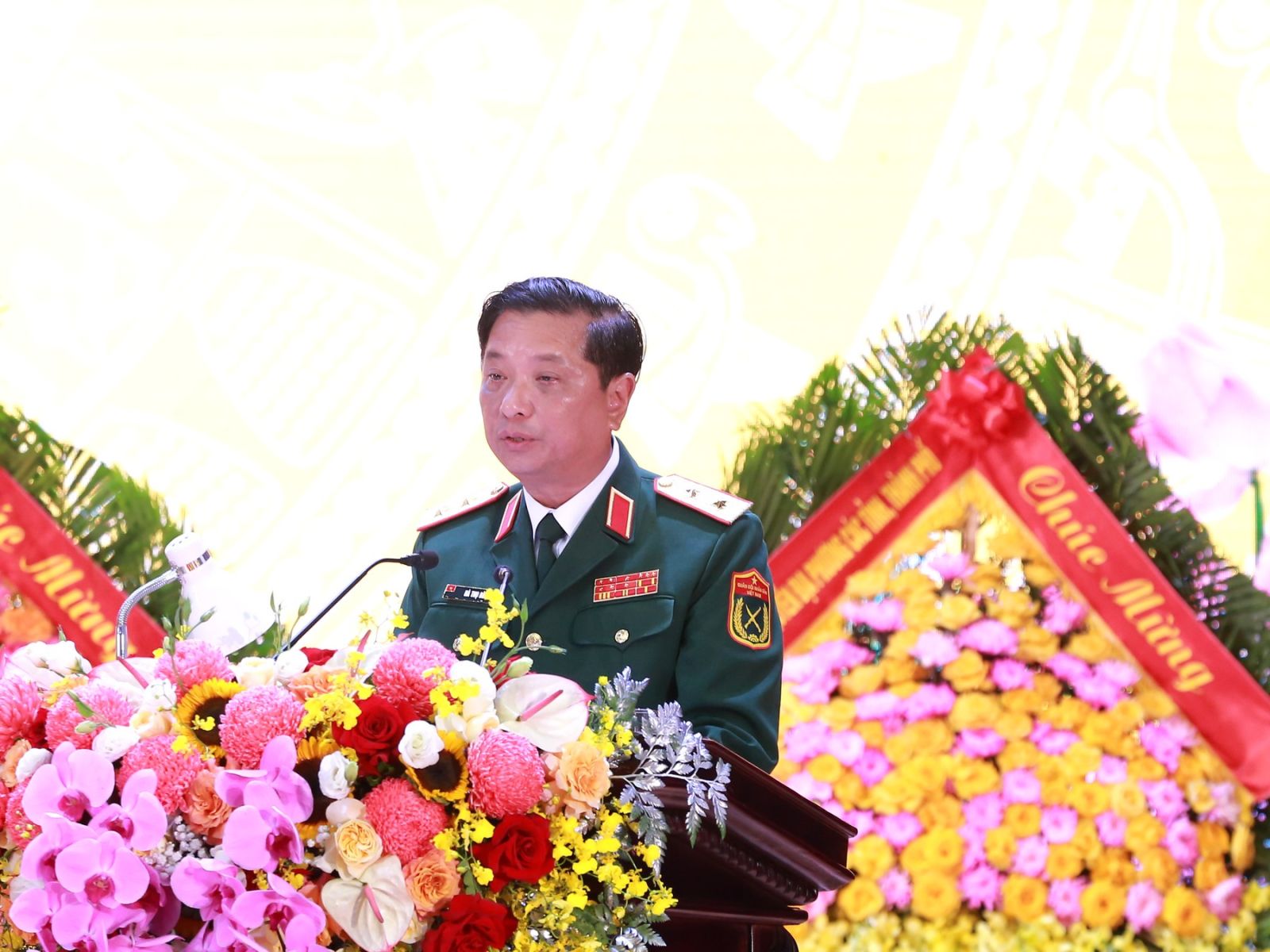 Đồng chí Trung tướng Hà Thọ Bình, Phó Bí thư Đảng ủy, Tư lệnh Quân khu trình bày Diễn văn tại Lễ Kỷ niệm