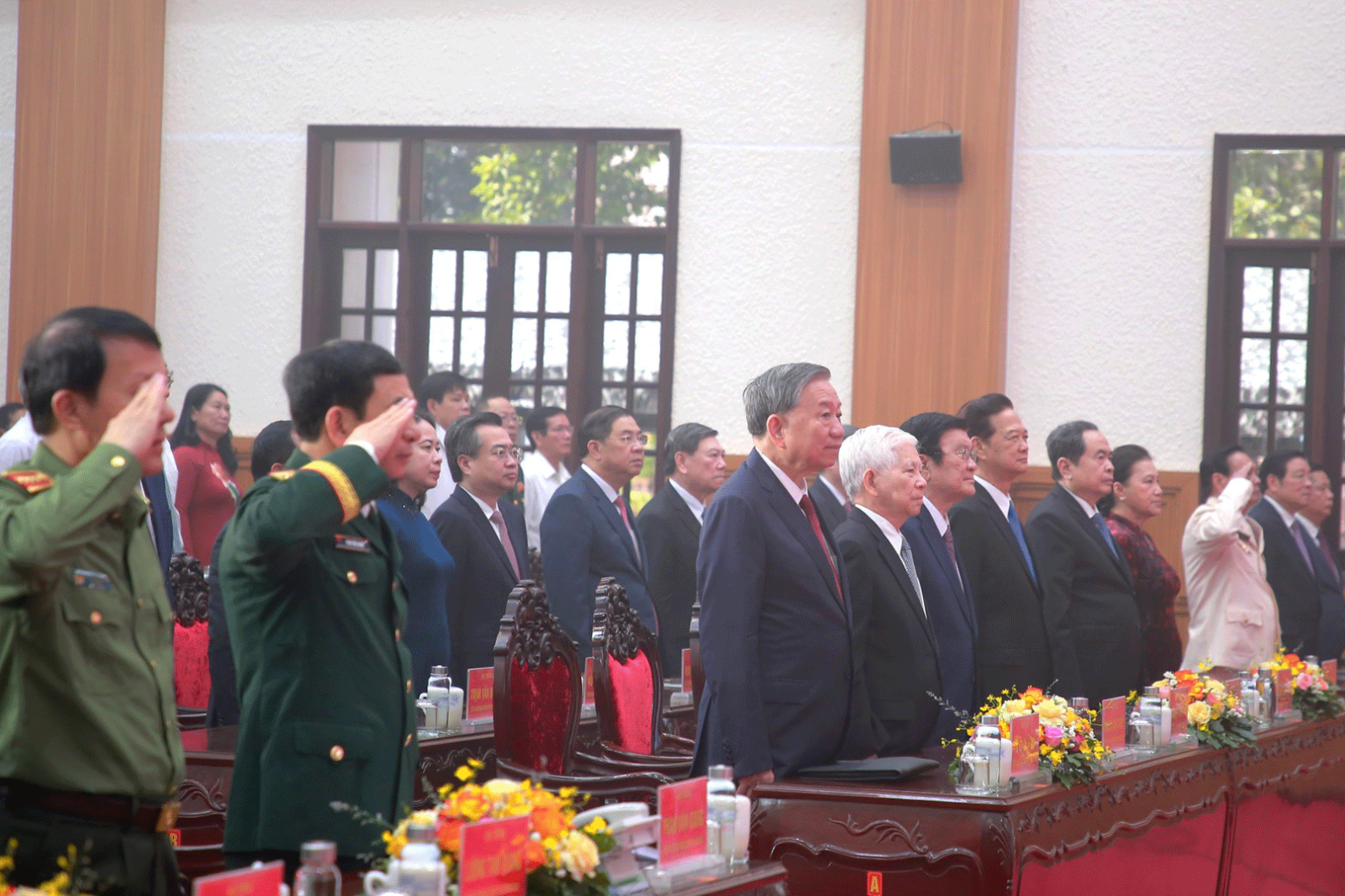 Dự Lễ kỷ niệm có các đồng chí: Nguyễn Minh Triết, nguyên Ủy viên Bộ Chính trị, nguyên Chủ tịch nước; Trương Tấn Sang, nguyên Ủy viên Bộ Chính trị, nguyên Chủ tịch nước; Nguyễn Tấn Dũng, nguyên Ủy viên Bộ Chính trị, nguyên Thủ tướng Chính phủ; Trần Thanh Mẫn, Ủy viên Bộ Chính trị, Chủ tịch Quốc hội; Nguyễn Thị Kim Ngân, nguyên Ủy viên Bộ Chính trị, nguyên Chủ tịch Quốc hội; Lê Hồng Anh, nguyên Ủy viên Bộ Chính trị, nguyên Thường trực Ban Bí thư.