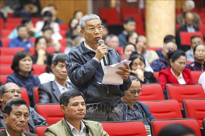 Cử tri phường Điện Biên Phủ tham gia ý kiến tại Hội nghị. Ảnh: Xuân Tư/TTXVN