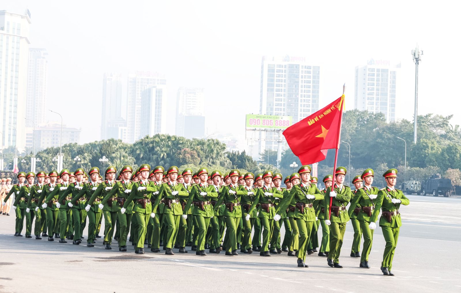 Khối sĩ quan Cảnh sát nhân dân tham gia duyệt đội ngũ tại buổi lễ.