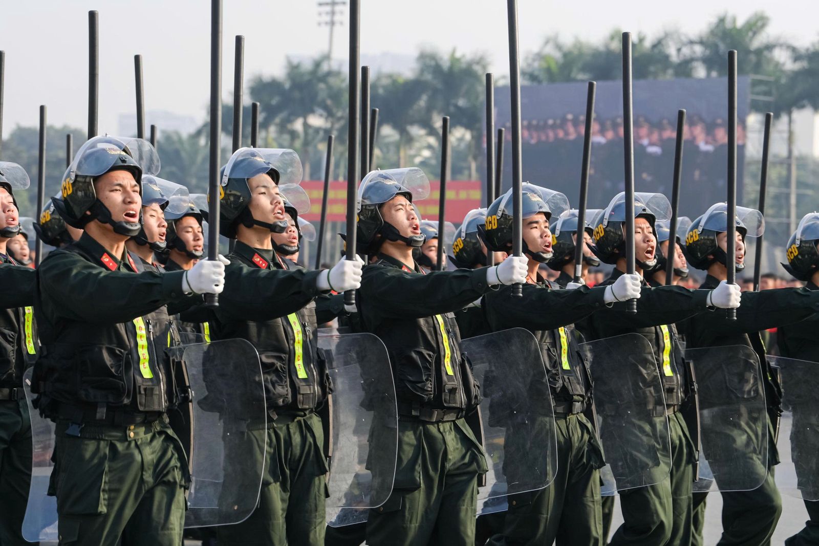 Khối nam Cảnh sát cơ động tham gia duyệt đội ngũ tại buổi lễ.