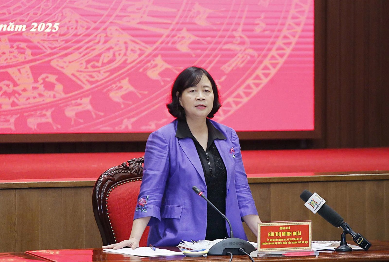 Bí thư Thành ủy Hà Nội Bùi Thị Minh Hoài phát biểu kết luận hội nghị.